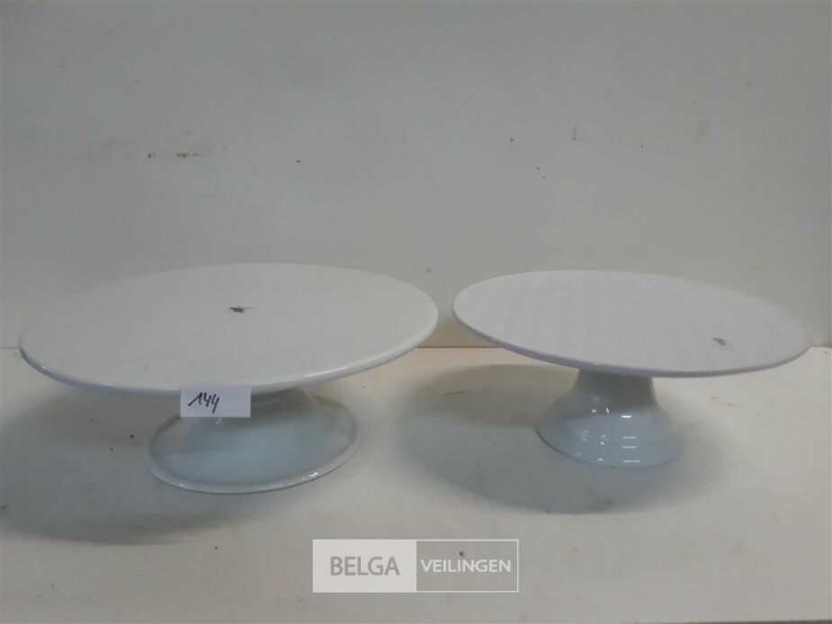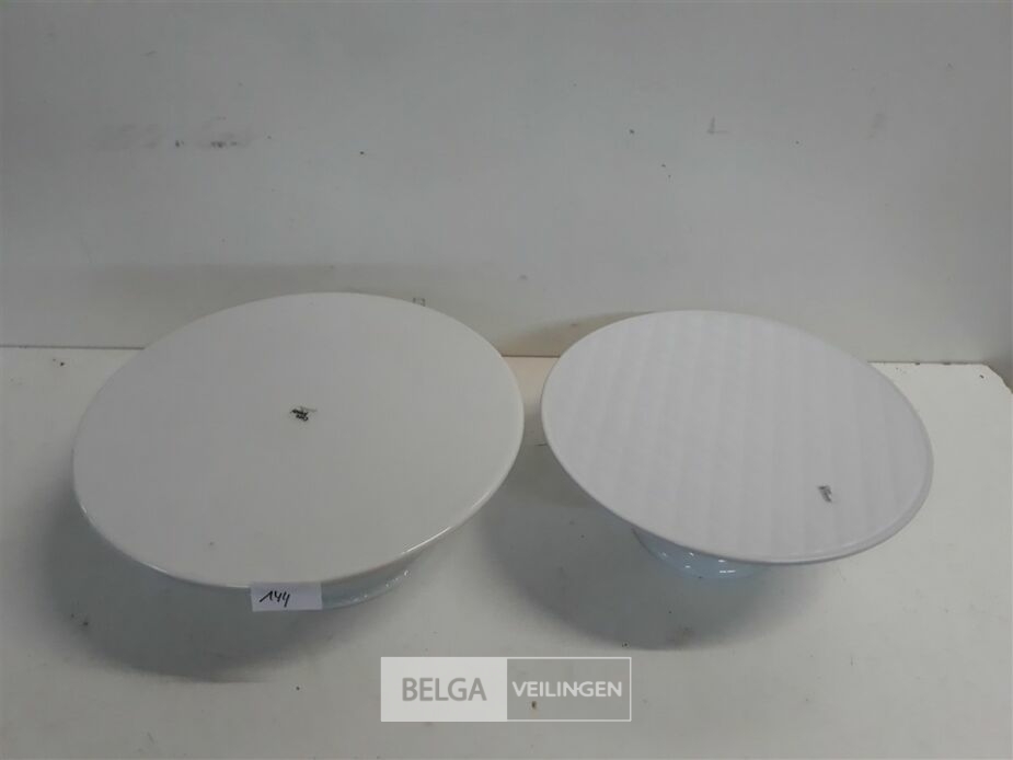 2 x Taartschotel porslein op voet 1 x 24 cm + 1 x 27 cm