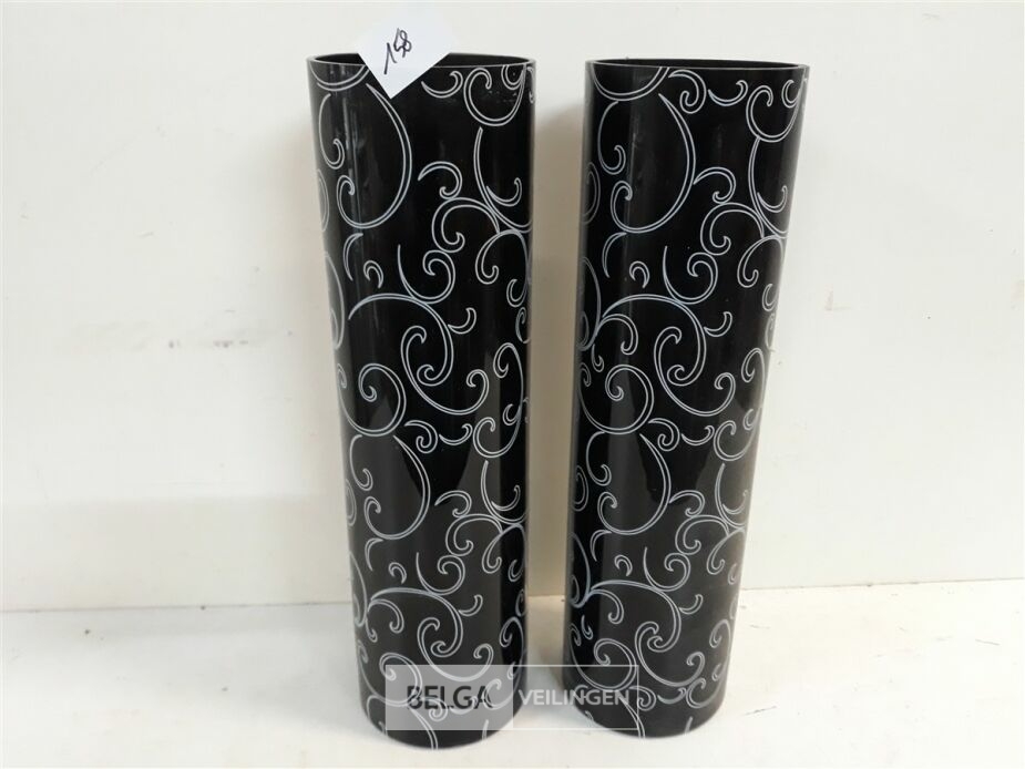 2 x Vaas cylinder zwart glas 36cm dia 10 cm