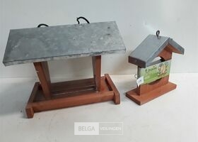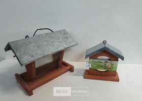 2 x Vogel voederhuisje hout met zinken dak 2 assorti 1 x appel/mezenbol huisje 18x7x20 cm + 1 x zaadjeshuis 28x17x25 cm