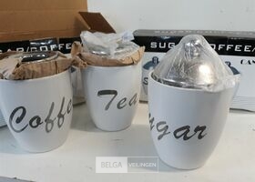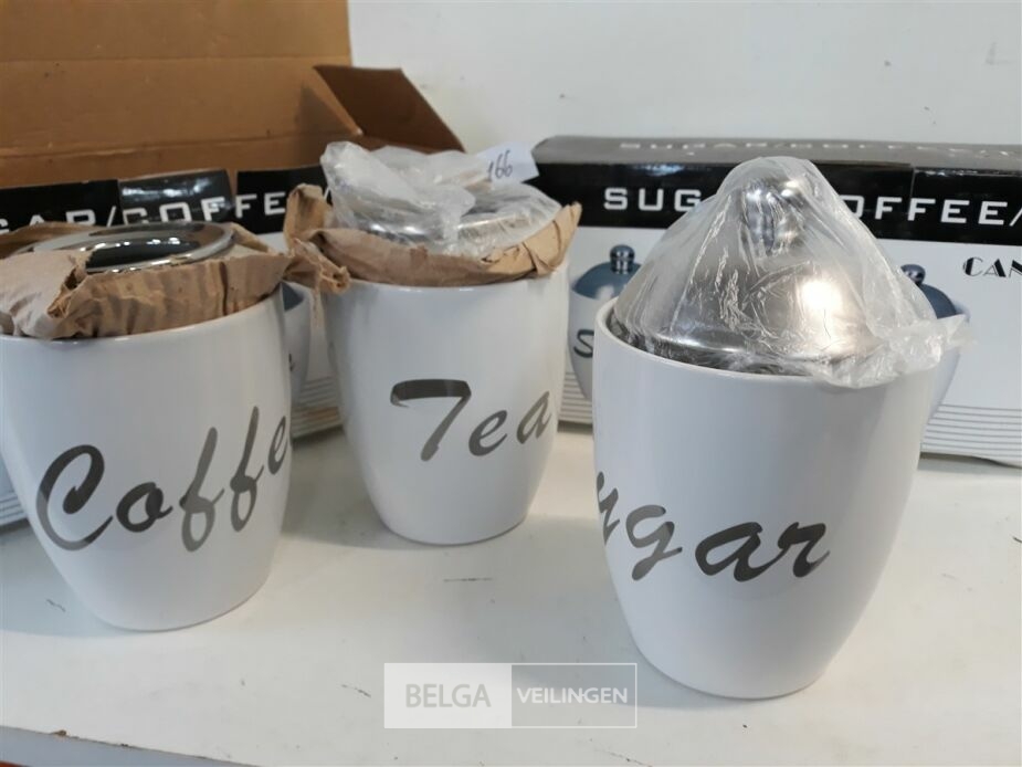 2 x Voorraadpot porselein met pvc deksel 3 delig 17 cm