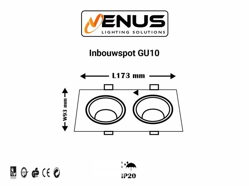 20 x Inbouwspotfitting (EP-2) - Verstelbaar - GU10 - Wit/Zwart - Model : inbouw - Productkleur : zwart/wit - Indoor - Geschikt voor gebruik : binnen - IP-waarde : IP20 - Afmetingen/mm : L 173 x W 93 x H 33 - Inbouwmaat/mm : L 150 x W 75 mm - Fitting : GU10 - Garantie : 2 jaar - Antireflectie / MR16-GU10 / Binnenring verstelbaar - Lampen zijn niet inbegrepen.