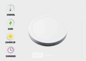 20 x LED-oppervlaktepanelen – Ronde vorm – Vermogen 30W – LED-type: SMD – Kleurtemperatuur 3000K (warm wit) – Lichtstroom: ≈ 2400 lumen – Afmetingen: 280 x 28 mm – Spanning: 220-240V (50/60 Hz) – Inclusief stuurprogramma's – Bescherming: IP20 – DuurLevensduur: 30.000 uur – Beamingshoek: 120° – Inclusief montageset – Ideaal voor kantoren, winkels en binnenruimtes.