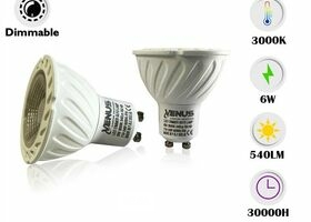 25 x GU10 LED Spot 3000K - 6W - Dimbaar - Vorm : rond - Productkleur : wit - Levensduur/uren : 30.000 - Lumen : 540 - Stralingshoek : 38 ° - Indoor - Geschikt voor gebruik : binnen - IP-waarde : IP20 - Spanning : 220-240V (50/60Hz) - Afmetingen/mm : Ø 50 x 55 - LED GU10 - Kleurtemperatuur : 3000K - CRI(RA) : > 80 - Fitting : GU10 - Vermogen : 6W replaces 60W - Dimbaar