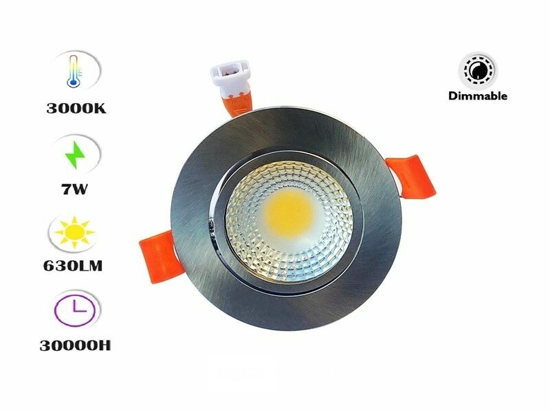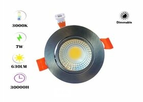 25 x Inbouwspot 7W LED Zilver dimbaar 3000K Warm wit - Model : inbouw - Vorm : rond - Materiaal : Metaal - Productkleur : zilver - Levensduur/uren : 30.000 - Lumen : 630 - Stralingshoek : 40° - Indoor - Geschikt voor gebruik : binnen - IP-waarde : IP20 - Spanning : 220-240V (50/60Hz) - Afmetingen/mm : 88 x 50 - Inbouwmaat/mm : Ø 70 mm - LED COB - Kleurtemperatuur : 3000K - CRI(RA) : 80 - Vermogen : 7W - Dimbaar - Verstelbaar - Lichtbron inbegrepen