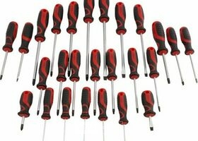 Grote diversiteit aan schroevendraaiers plat en kruis en torx.