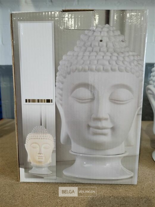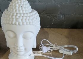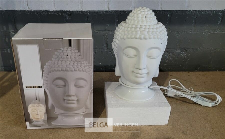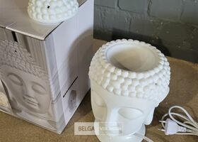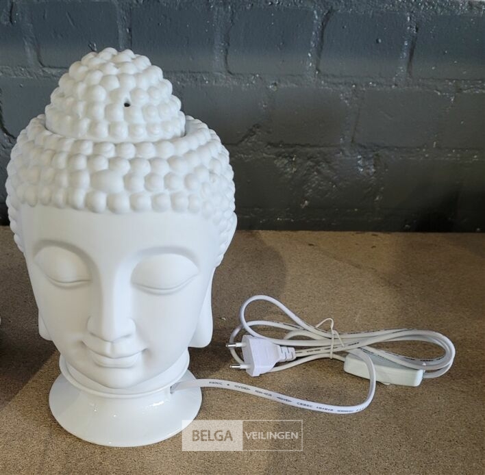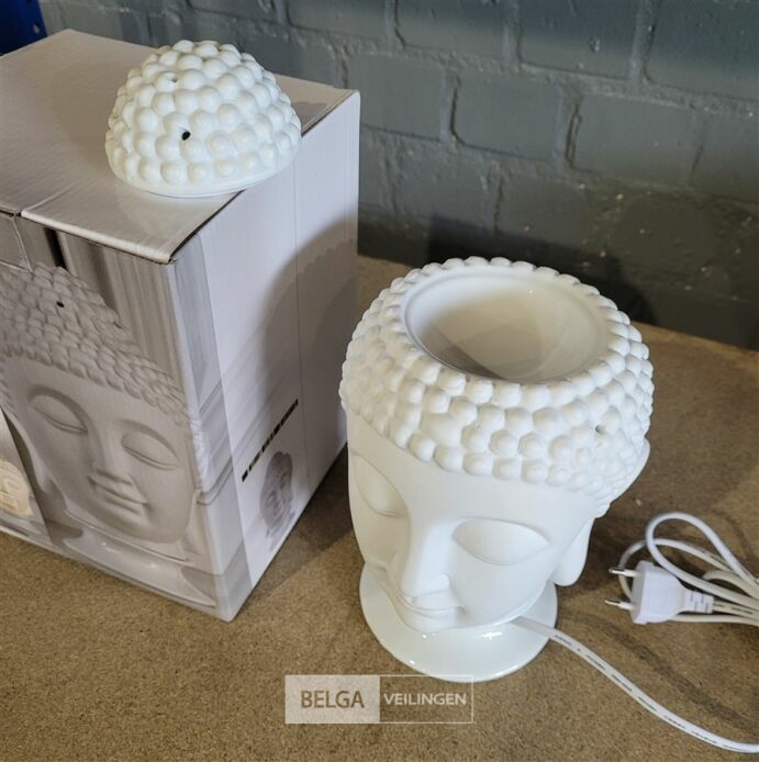 2x Keramische Boeddha hoofd elektrische oliebranderlamp. Dankzij het afneembare deksel kun je de bovenkant optillen om geurolie toe te voegen. 14*15*23cm