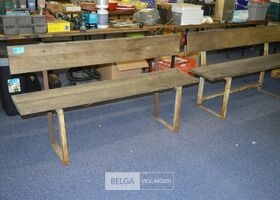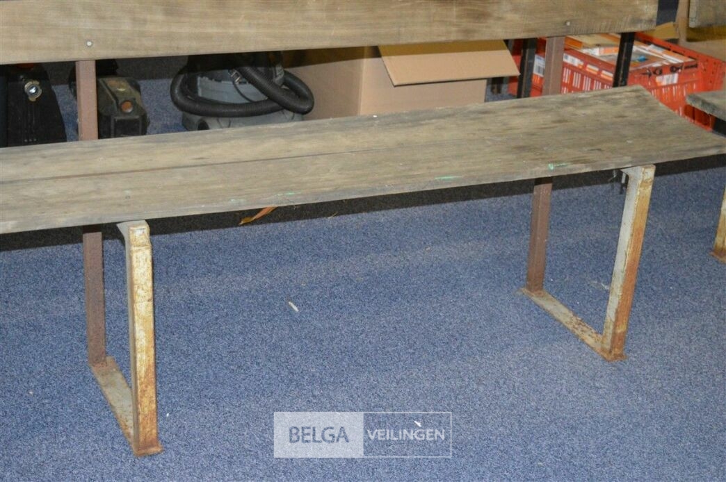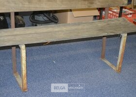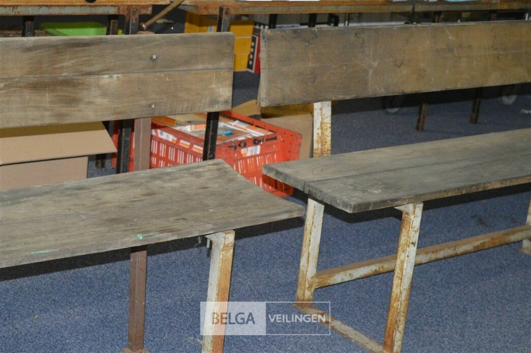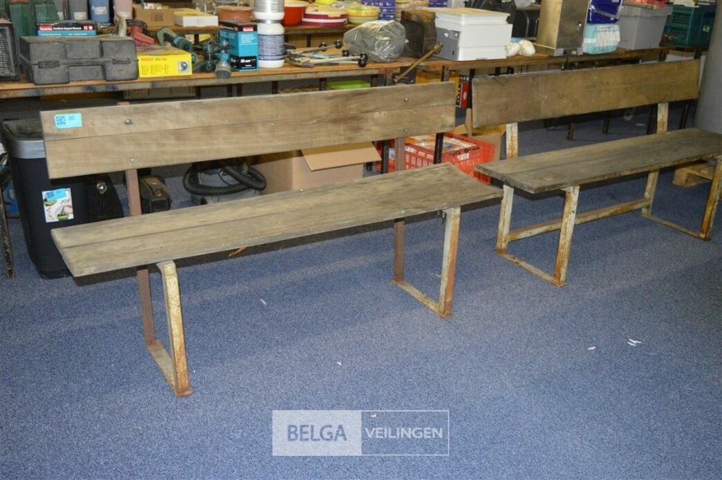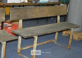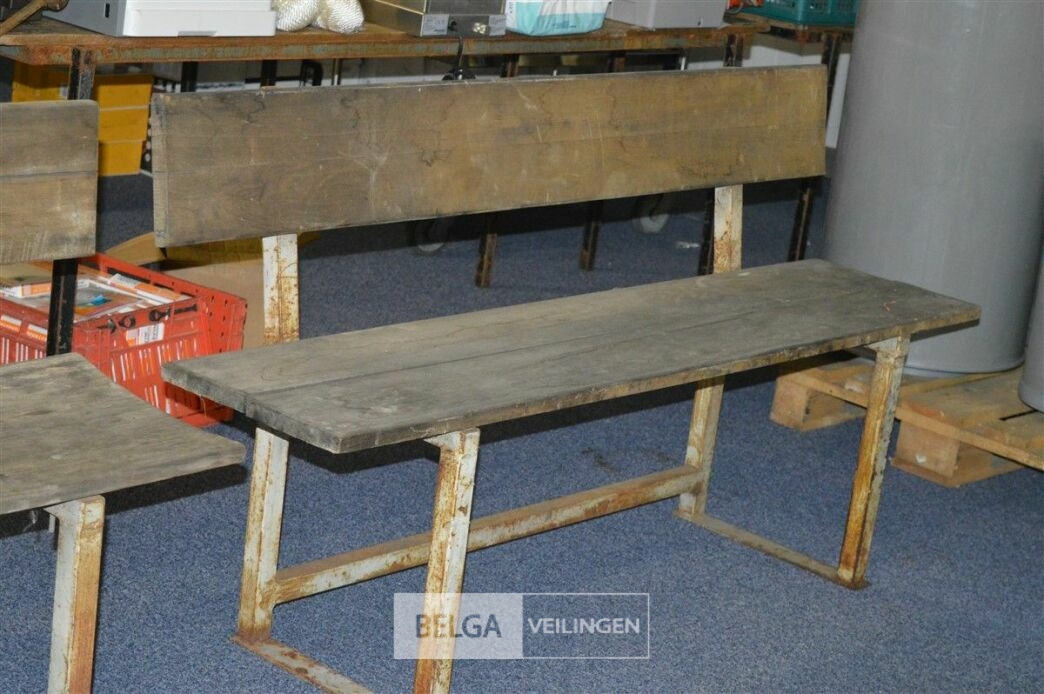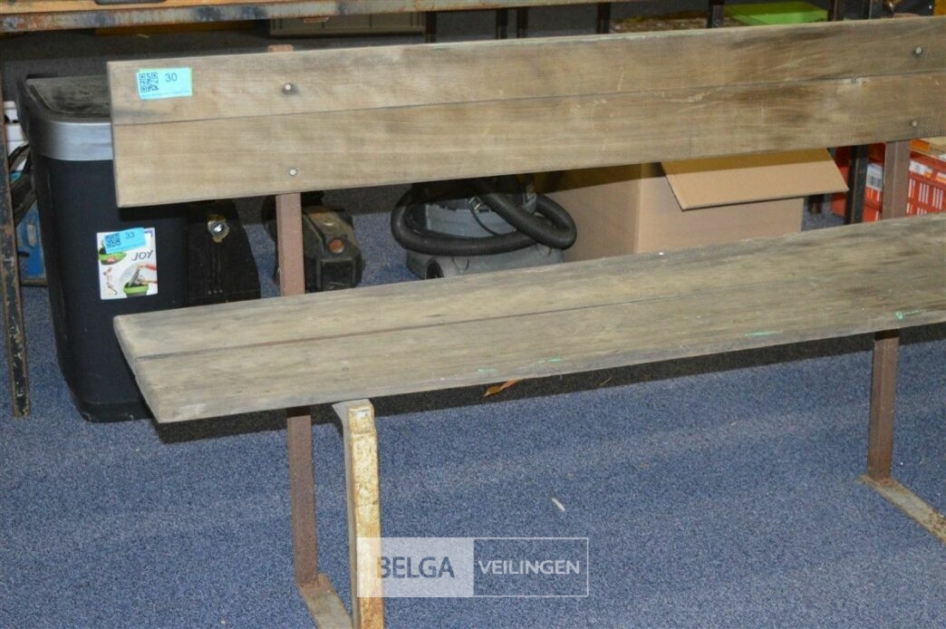 2x oude tuinbanken met ijzeren onderstel L1,50 cm x zithoogte 48 cm