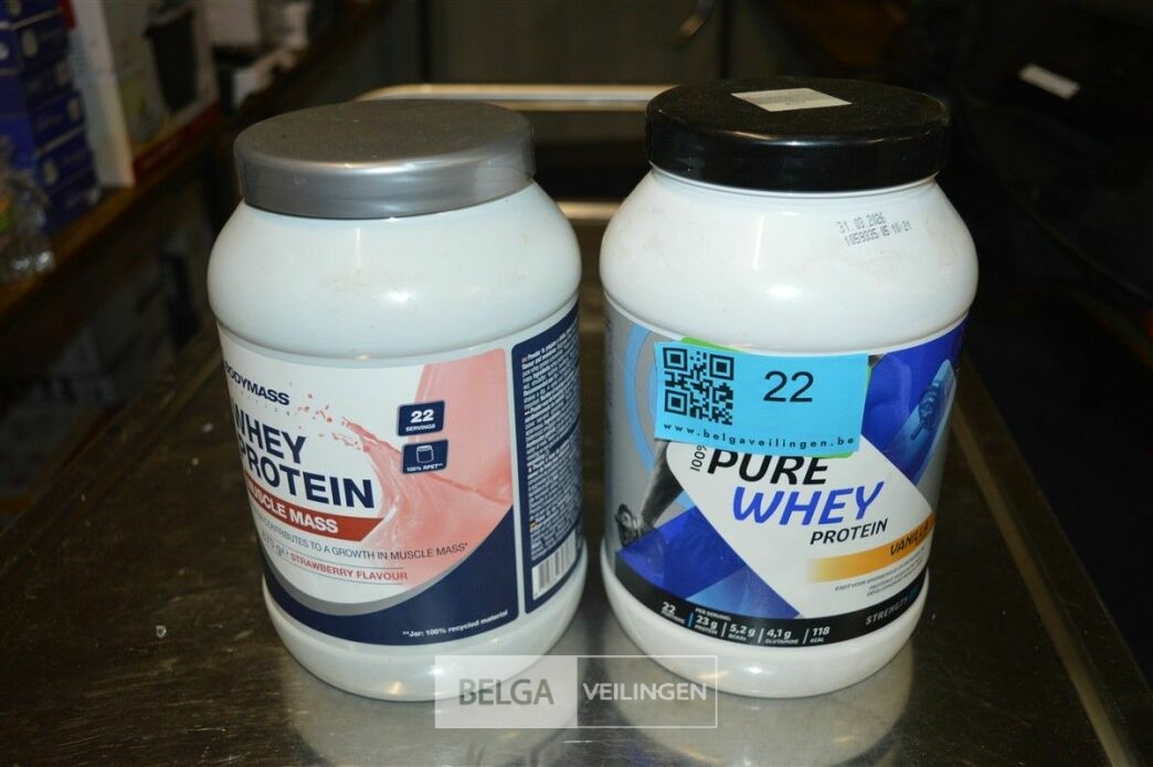 2x potten Whey proteïne, 1x vanille + 1x aardbei smaak