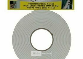 Tochtstrip zelfklevend rol 5,5 mtr. Rol met 5,5 meter zelfklevende tochtstrip met een breedte van 9 mm, voor het tochtvrij maken van ramen, kozijnen etc.
