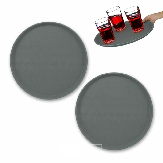 dienblad antislip - set van 2 - 40 cm - opstaande rand - horeca - grijs-retouren van Relaxdays