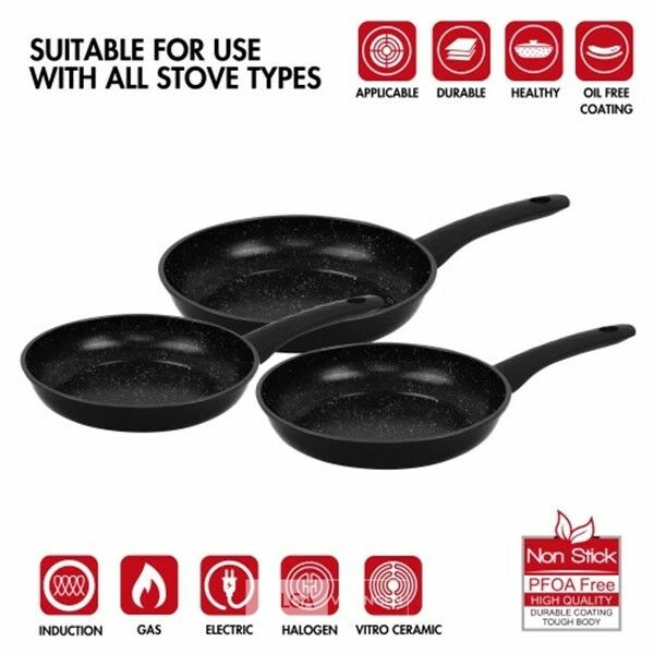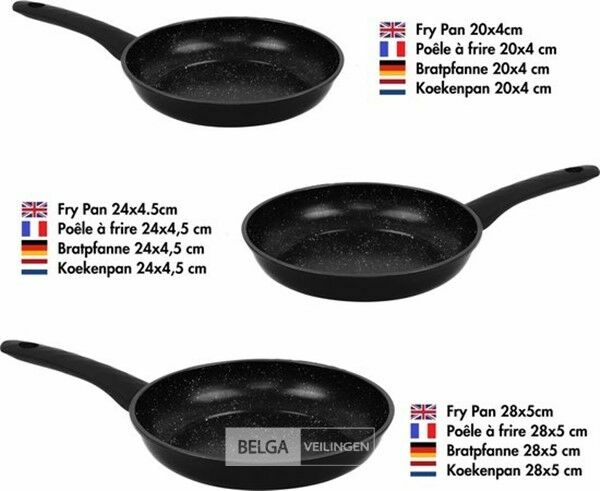 Uitgebreide set: de set bevat essentiële onderdelen voor verschillende kookbehoeften: koekenpan 20x4cm, koekenpan 28x5cm en koekenpan 24x4,5cm, en biedt een complete oplossing voor dagelijkse kooktaken.