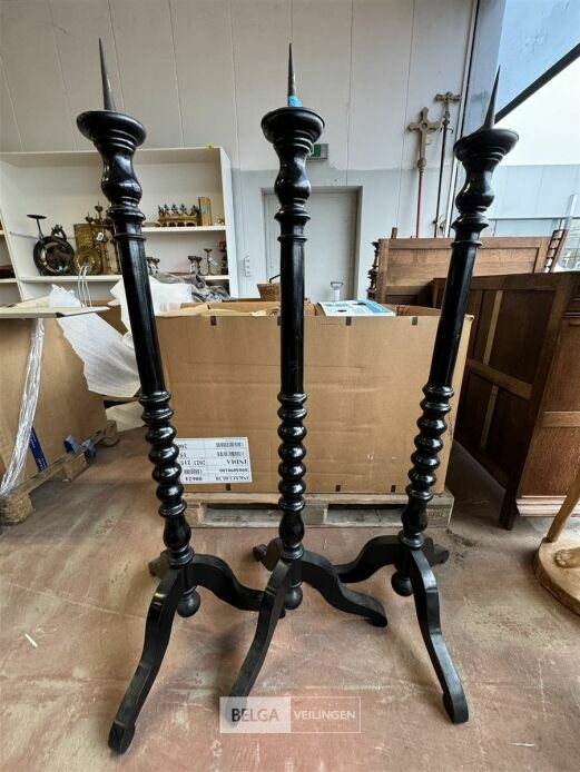 3 houten vloerkandelaars – kleur: zwart – (afm. ± 130 cm)