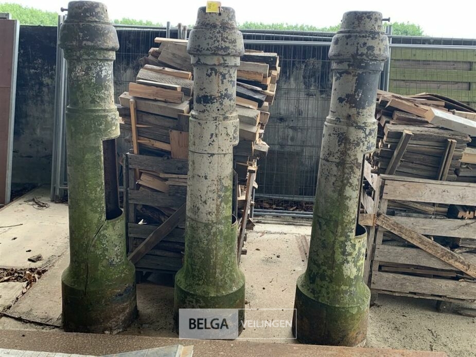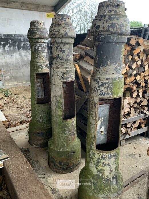 3 oude gietijzeren zuilen, h 182, onderzijde ø 40 cm, bovenzijde ø 15 cm