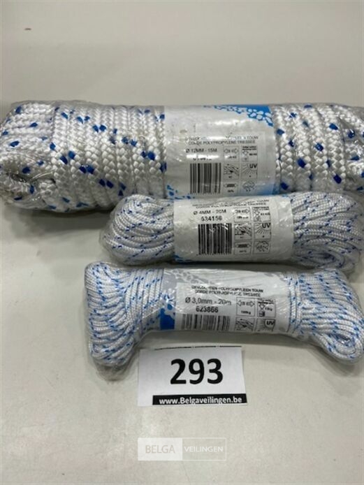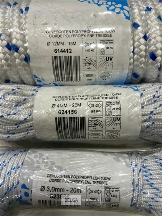 3 x gevlochten polypropyleen touw 12-4 en 3 mm