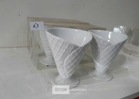 3 x Ijscoupe op voet 14 cm porselein 2 stuks
