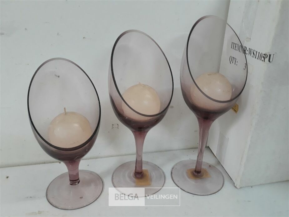 3 x Kaarsenhouder glas in set met bolkaars 17-20-22 cm