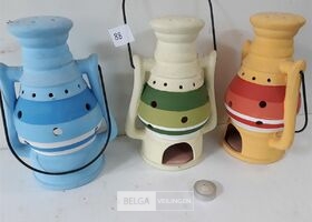 3 x Lantaarn 26 cm uit aardewerk met T-lichtje mix kleuren