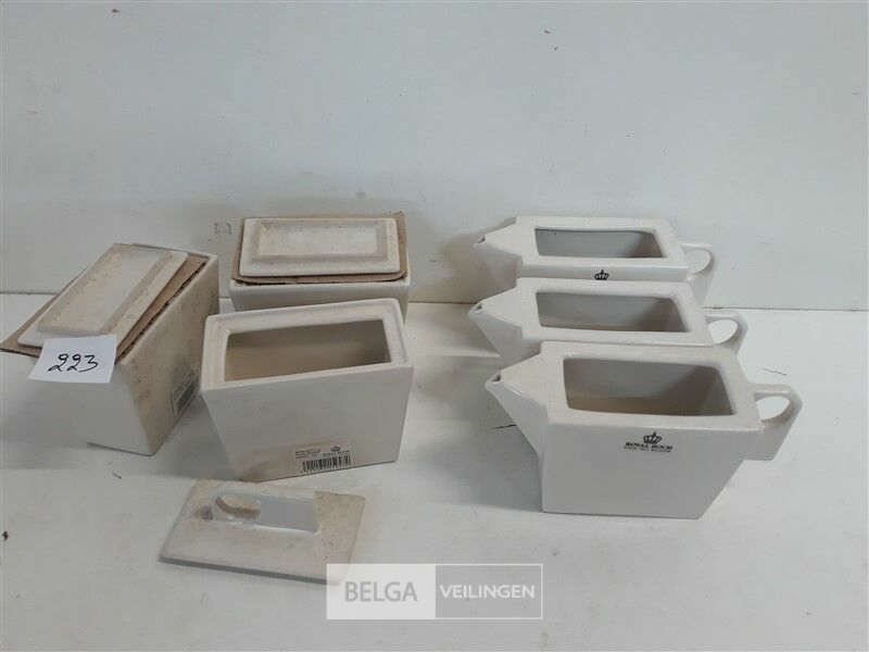 3 x Melkkan + 3 x suikerpot met deksel 10,5 x7 cm beige Royal Boch porselein
