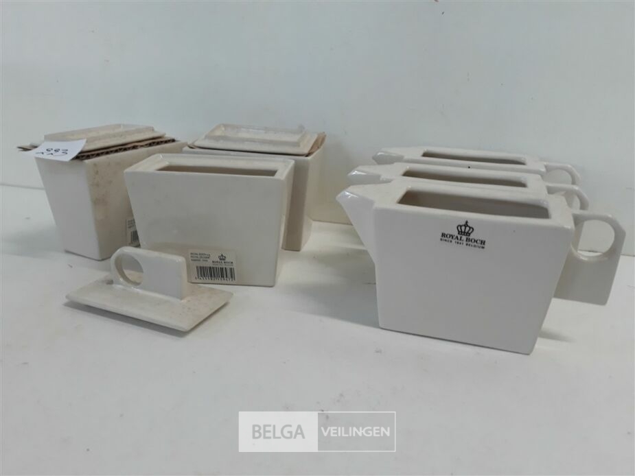 3 x Melkkan + 3 x suikerpot met deksel 10,5 x7 cm beige Royal Boch porselein
