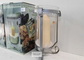 3 x Party light houder uit metaal met glazen stolp 30 cm met kaars 20 cm