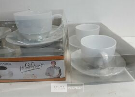 3 x Piet Huysentruyt 2 x koffietas 8,5x6 cm met 2 x onderbord 14,5x14,5 cm