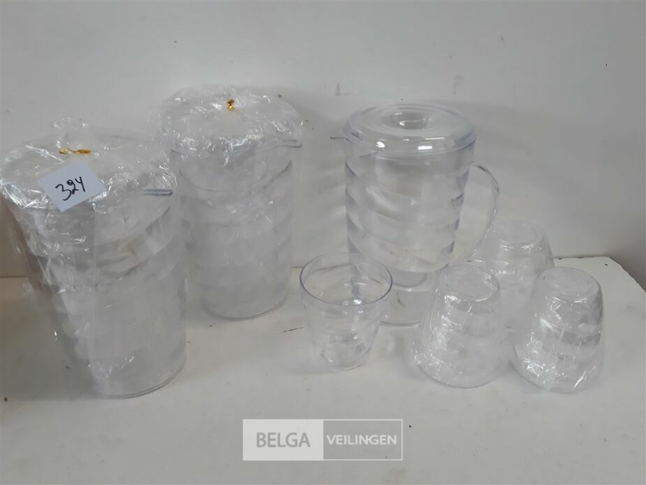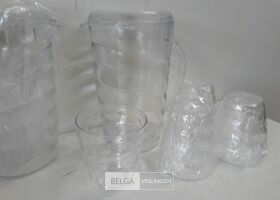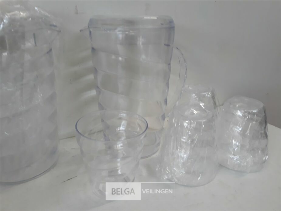 3 x Schenkkan PVC transparant 1 L met 4 bekers