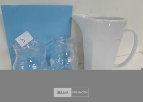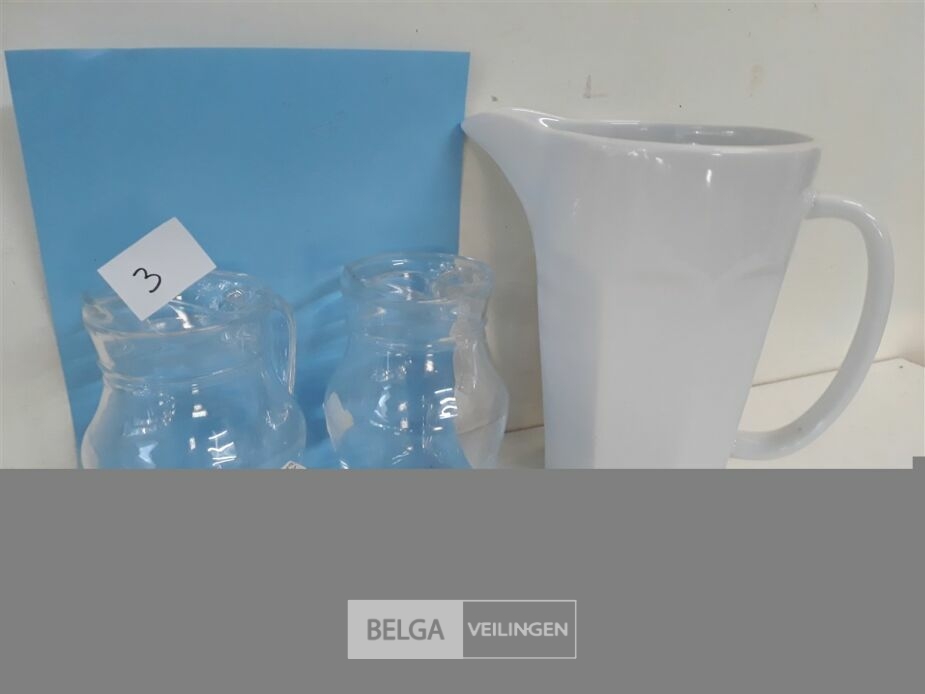 2 x Schenkkan glas 0,5L + 1 x Schenkkan porselein +/-1,5L