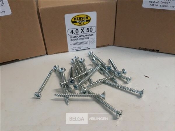3 x Spaanplaatvijzen houtschroeven kruiskop 4,0 x 50 mm 200 stuks wit verzinkt