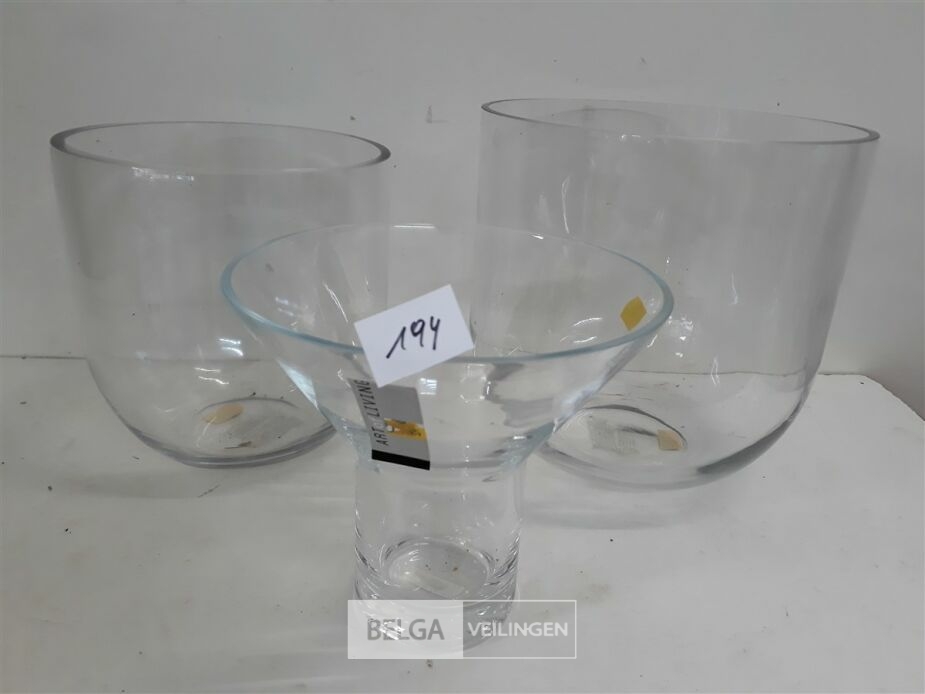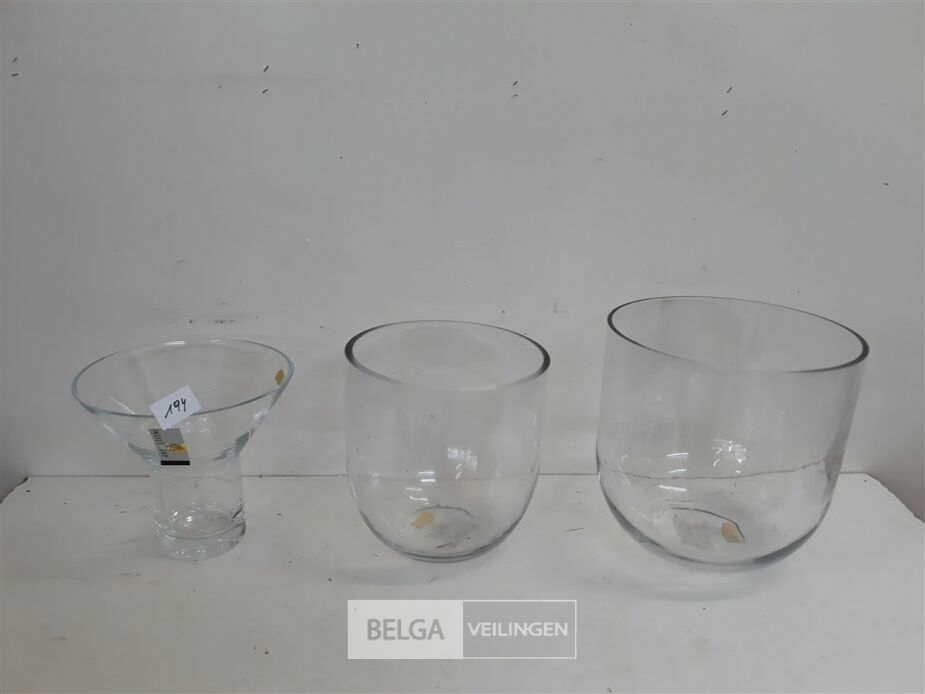 3 x Vaas uit glas 1 x kelk 19 cm D 18 cm + 1 x cylinder 21 cm D 20 cm + 1 x cylinger 23 cm D 24 cm