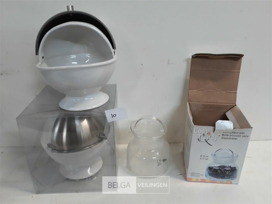 3 x Voorraadpot mix 1 x glas 11 cm 2 x porcelein met inox schuifdeksel 14 cm