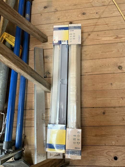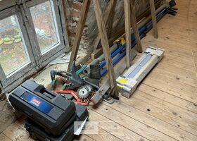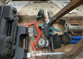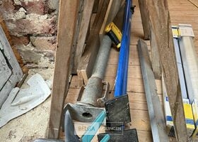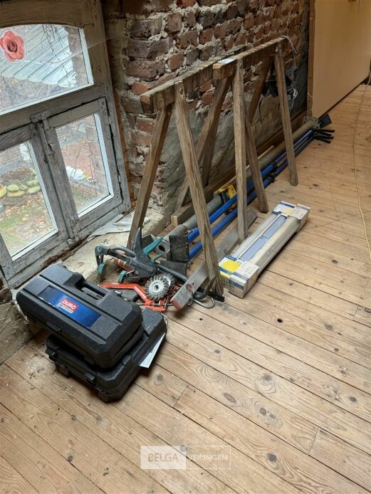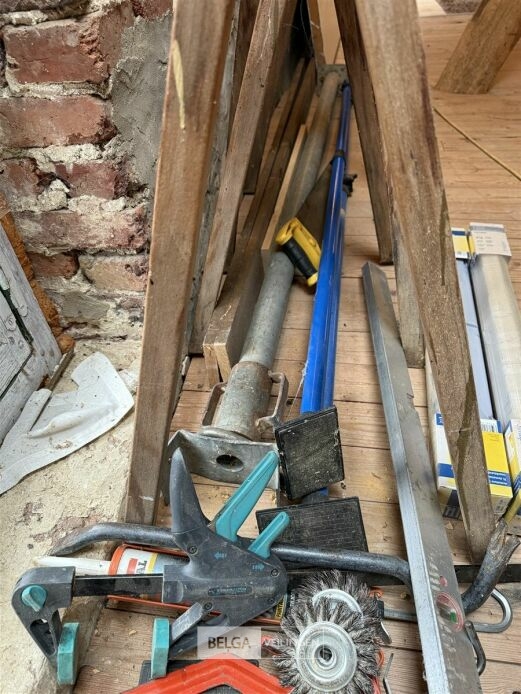 3x Verstelbare steunen + zaag + 2x schragen + div