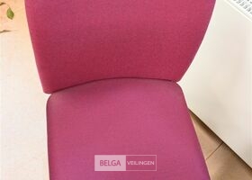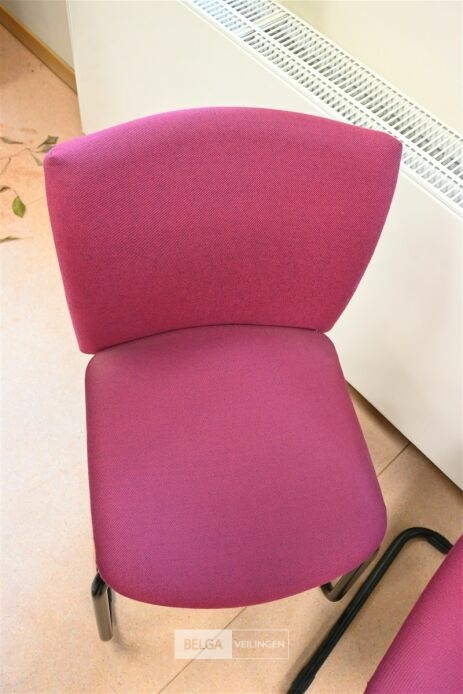 4 Stoelen, stoffen bordeau bekleding en zwart metalen onderstel