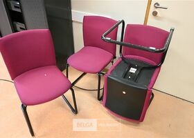 4 Stoelen, stoffen bordeau bekleding en zwart metalen onderstel