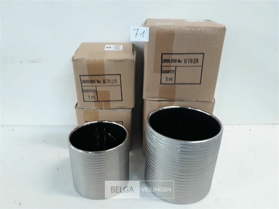 4 x Bloempot rond design indoor 2 x 11 cm + 2 x 14 cm zilver