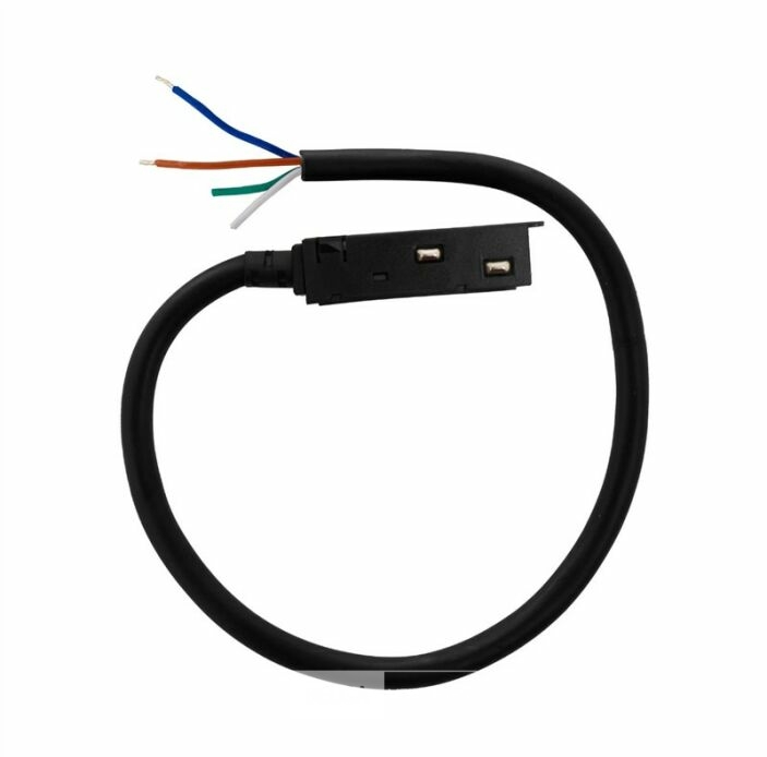 4 x Connecteur d'alimentation avec câble pour rail magnétique - 48V - Type : Connecteur d'alimentation avec câble pour magneRails tiques - Tension : 48VDC - Protection : IP20 (pour une utilisation en intérieur) - Dimensions : 90 x 15 mm - Matériau : Aluminium de haute qualité - Couleur : Noir - Transformateur non inclus - Matériel de montage inclus - Convient pour : Espaces de vie - magasins - bureaux- hôtels - restaurants - Idéal pour les vitrines et les applications commerciales - Assure une alimentation électrique stable et sûre - Design élégant et moderne.