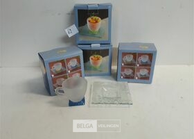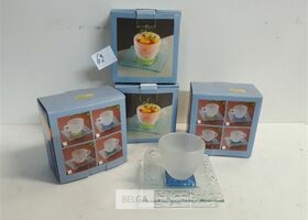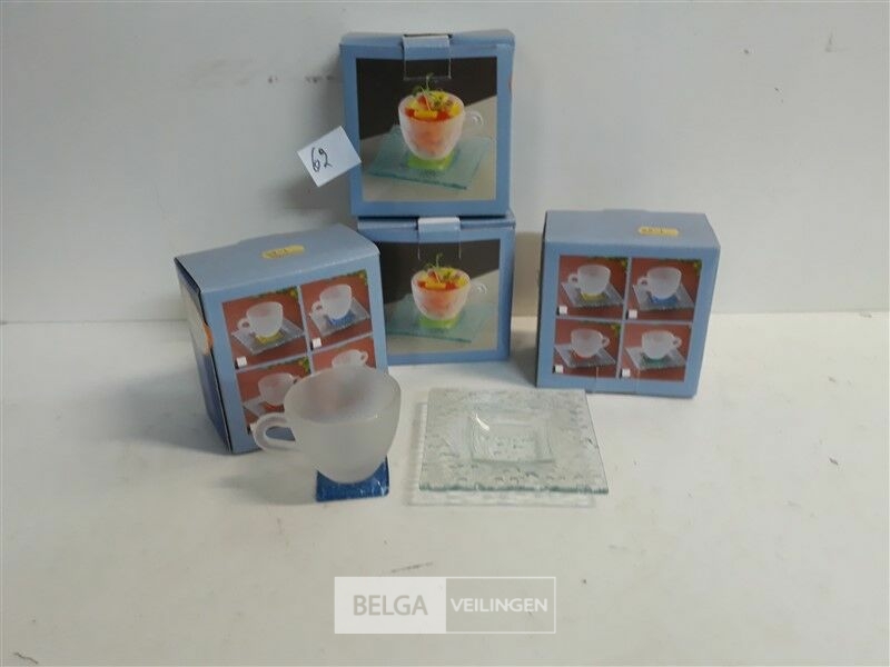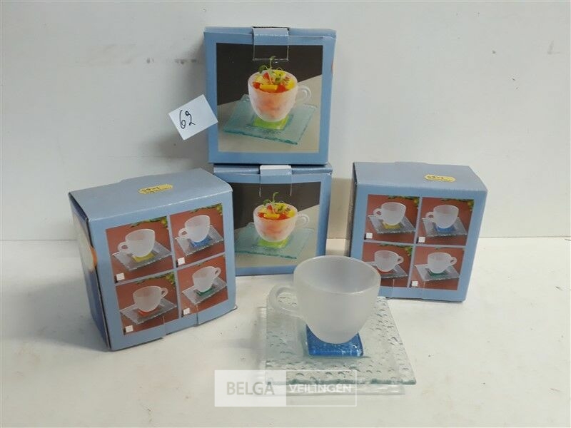 4 x Espresso kop glas met gekleurde voet mix kleuren + onderbord