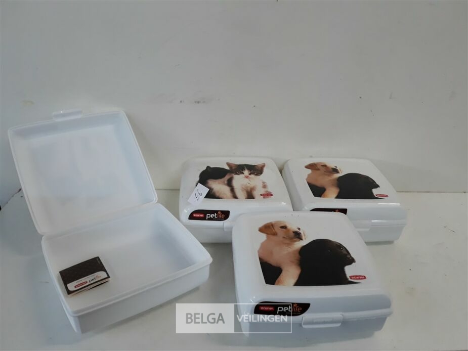 4 x Opbergdoos 1 L Curver clip deksel met hond/kat print