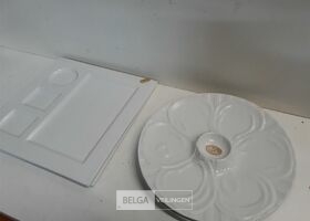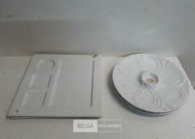 4 x Serveerschaal porselein met verdeling 2 x rond 28 cm + 2 x vierkant 30x30 cm