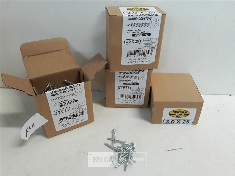 4 x Spaanplaatvijzen houtschroeven kruiskop 3,0 x 25 mm 200 stuks wit verzinkt