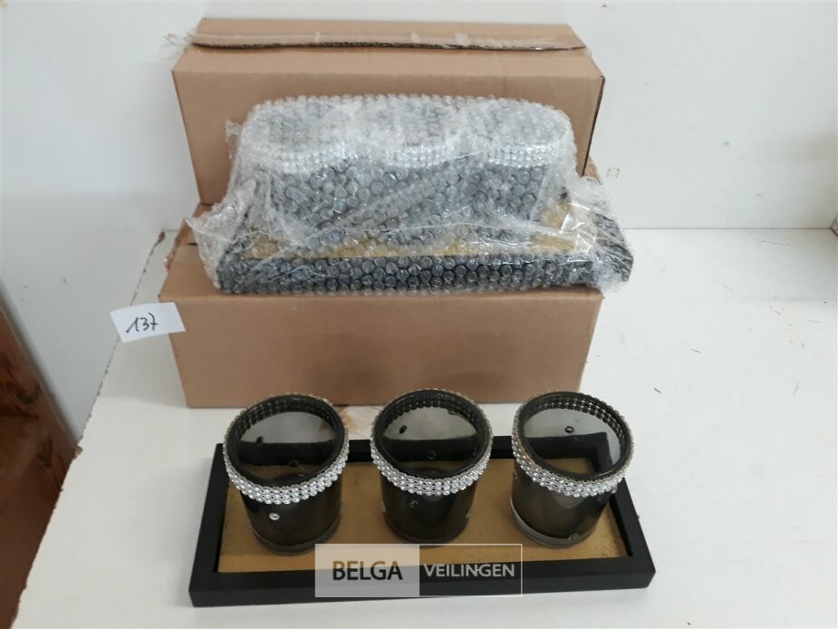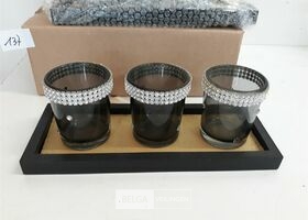 4 x T-licht glaasjes op houten bord 23x9 cm met 3 glaasjes
