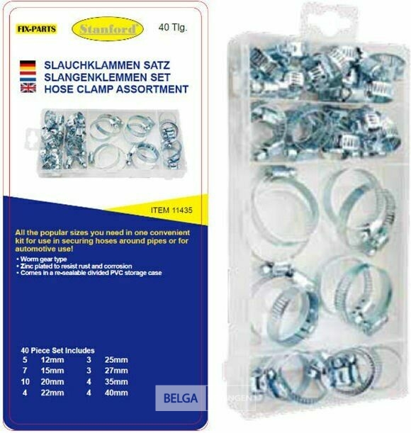 Slangenklemmen set 40-dlg.-5x 12 mm - 7x 15 mm - 10x 20 mm - 4x 22 mm - 3x 25 mm - 3x 27 mm - 4x 35 mm - 4x 40 mm