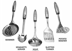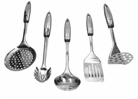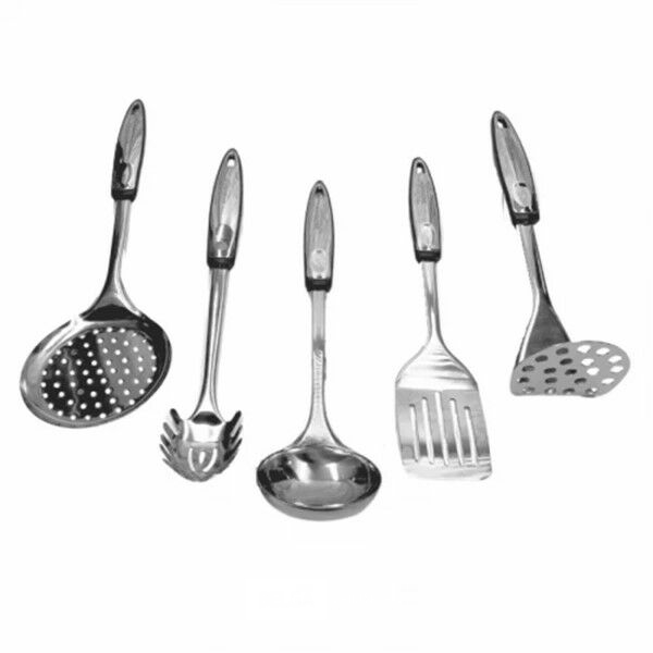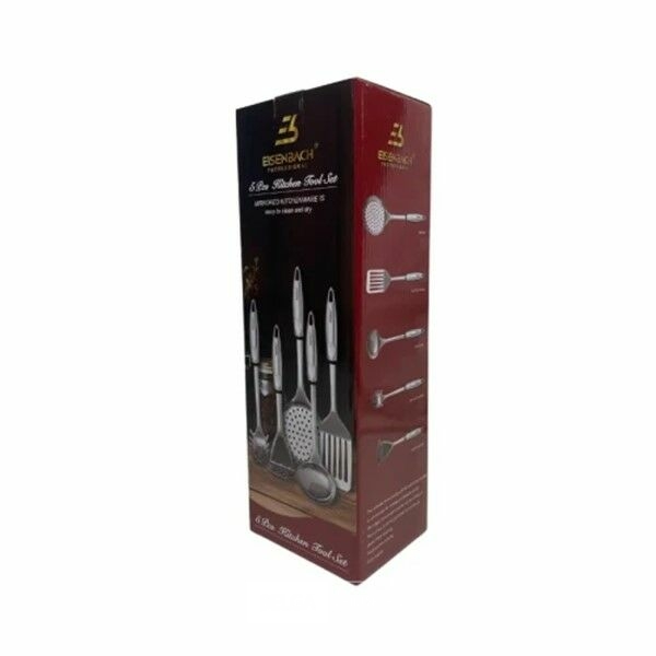 De Eisenbach A0018: 5-delige roestvrijstalen keukengereedschapset combineert duurzaamheid en elegantie, met gladde, krasvrije randen die uw kookgerei beschermen en een spiegelgepolijst oppervlak voor eenvoudige reiniging en een strakke uitstraling. De ergonomische handgrepen en het geïntegreerde haakontwerp bieden comfort tijdens gebruik en handige opslag, waardoor het een praktische en stijlvolle aanvulling is op elke keuken.