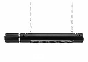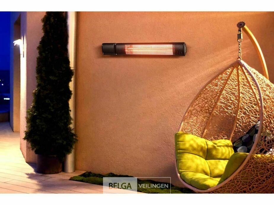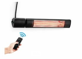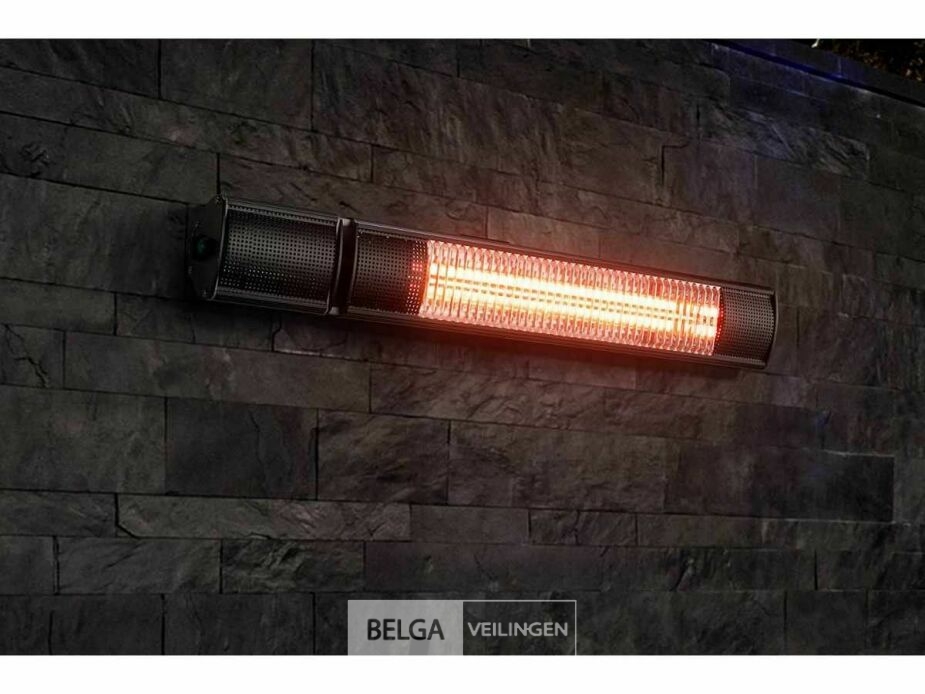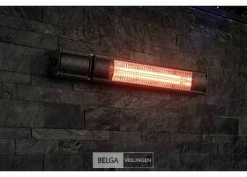 De terrasverwarmer heeft een vermogen van 2000 W en kan een oppervlakte van 6 m² verwarmen. Er is ook een handige afstandsbediening inbegrepen waarmee je vanop afstand de intensiteit kan veranderen. Er zijn 3 standen voorzien op het toestel: laag 1000 W, gemiddeld 1500 W, hoog 2000 W. De infrarood terrasverwarmer moet minimum op 1,8 m hangen, de ideale hoogte is 2,4 m. Deze wandheater is voorzien van golden tube infrarood halogeen lampen met een levensduur van 5000 tot 7000 uur. De behuizing van de verwarmer bestaat uit zwart gepoedercoat staal. Het toestel kreeg een IP-certificering van 65 d.w.z. dat het stof- en waterbestendig is. Deze infrarood terrasverwarmer kan dus zeker een regenbui verdragen en is daardoor helemaal outdoor proof. Alle accessoires (schroeven, beugels en ketting) om de wandheater op te hangen zijn inbegrepen. De terrasverwarmer wordt geleverd met een beugel. De beugel is ideaal om de terrasverwarmer op te hangen aan ronde palen.