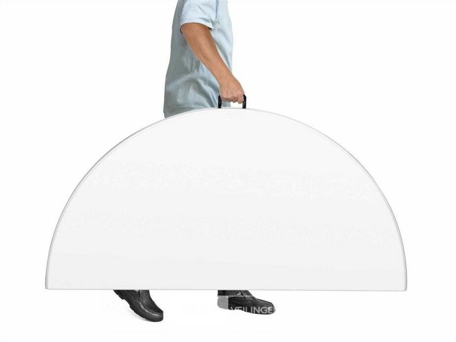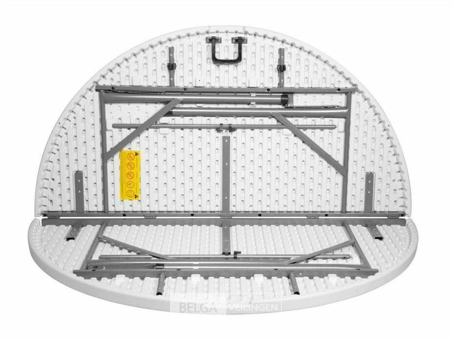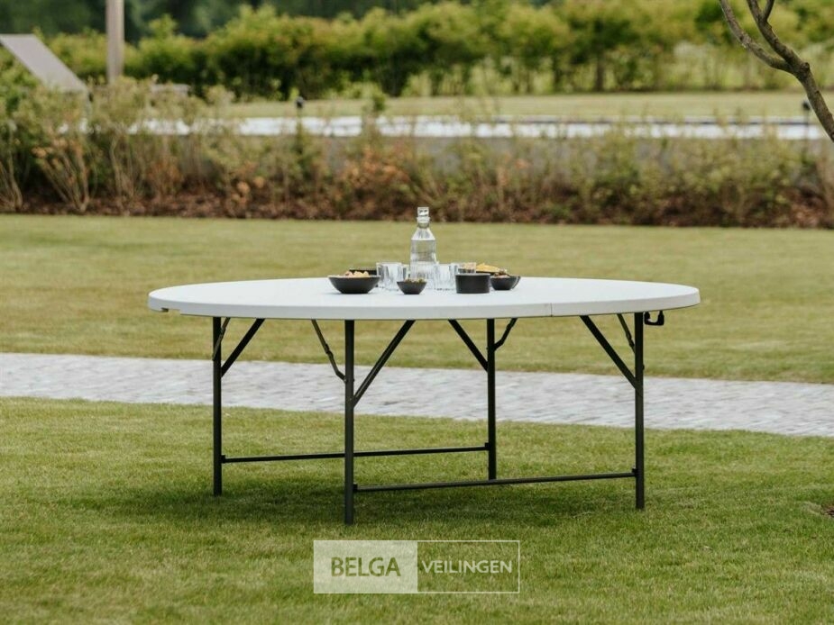 Onze ronde buffettafel is perfect voor elk feestje, je creëert snel en gemakkelijk extra ruimte. Deze tafel is stevig, maar licht en bovendien compact samen te vouwen. De buffettafel kan snel opgeborgen worden en is gemakkelijk in onderhoud. Het tafelblad bestaat uit HDPE (hoge dichtheid polyetheen) met een dikte van 4,5 cm. Het frame is gemaakt uit gepoedercoat staal met een hamerslag design.