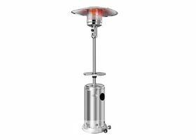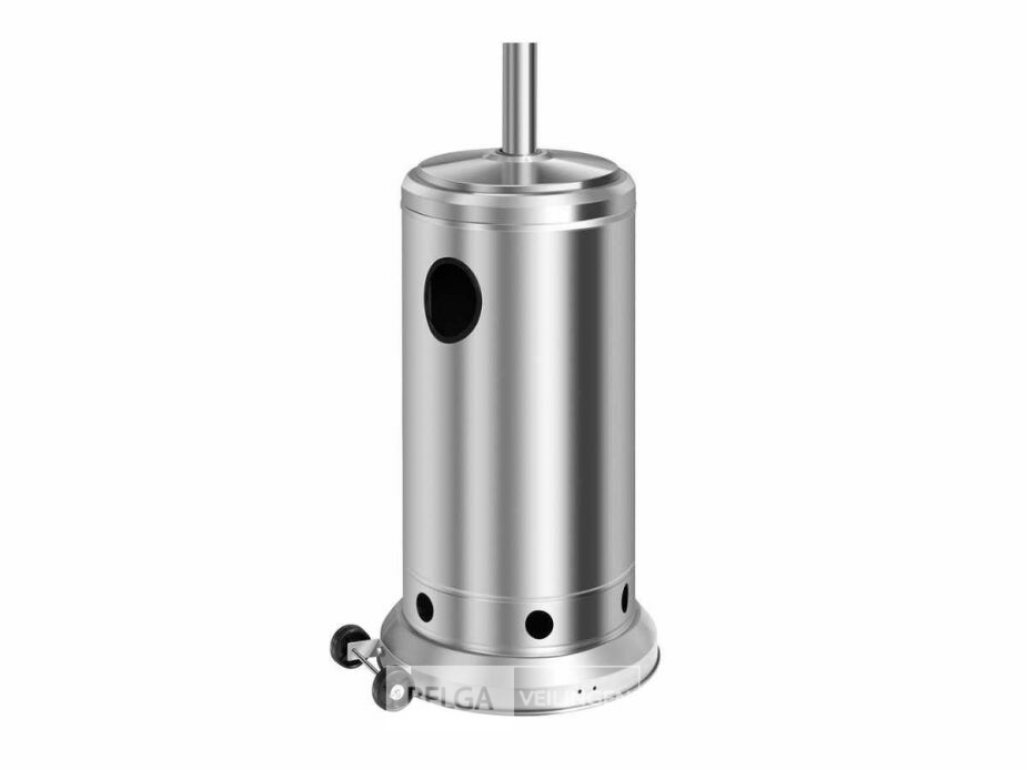 Onze Magma terrasverwarmer op gas voor professioneel of particulier gebruik is ideaal om je terras, tent of veranda onder te dompelen in een gezellig warme gloed. De staande verwarmer is 228 cm hoog en verwarmt met een vermogen van 13.000 Watt gemakkelijk ruimtes tot 25 m². Je kan deze terrasverwarmer overal inzetten, ook op plaatsen waar geen elektriciteitsaansluitingen voorzien zijn. De gasfles (niet inbegrepen) zit mooi verborgen onder de behuizing uit roestvrij staal. Alle accessoires die je nodig hebt om de fles op de verwarmer aan te sluiten (gasslang en drukregelaar voor gasfles met buitendraad) zijn wel inbegrepen. De staande verwarmer is bovendien voorzien van een omvalbeveiliging, waardoor het toestel automatisch wordt uitgeschakeld wanneer het omvalt of schuin staat. Dankzij de wielen onderaan verplaats je de verwarmer in een mum van tijd naar de plek waar enkel nog wat warmte ontbreekt om een gezellige avond tegemoet te treden. De terrasverwarmer op gas is dankzij de kap waterbestendig maar toch raden we aan om voorzichtig te zijn wanneer je het toestel bij hevige regen gebruikt. Wanneer er water in de injector treedt, kan de injector het begeven. Ook stof en zand kunnen het toestel kapot maken. Het is aan te raden het toestel onder een afdak te plaatsen of van een beschermhoes te voorzien wanneer je het niet gebruikt.