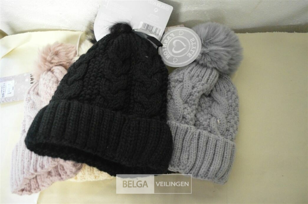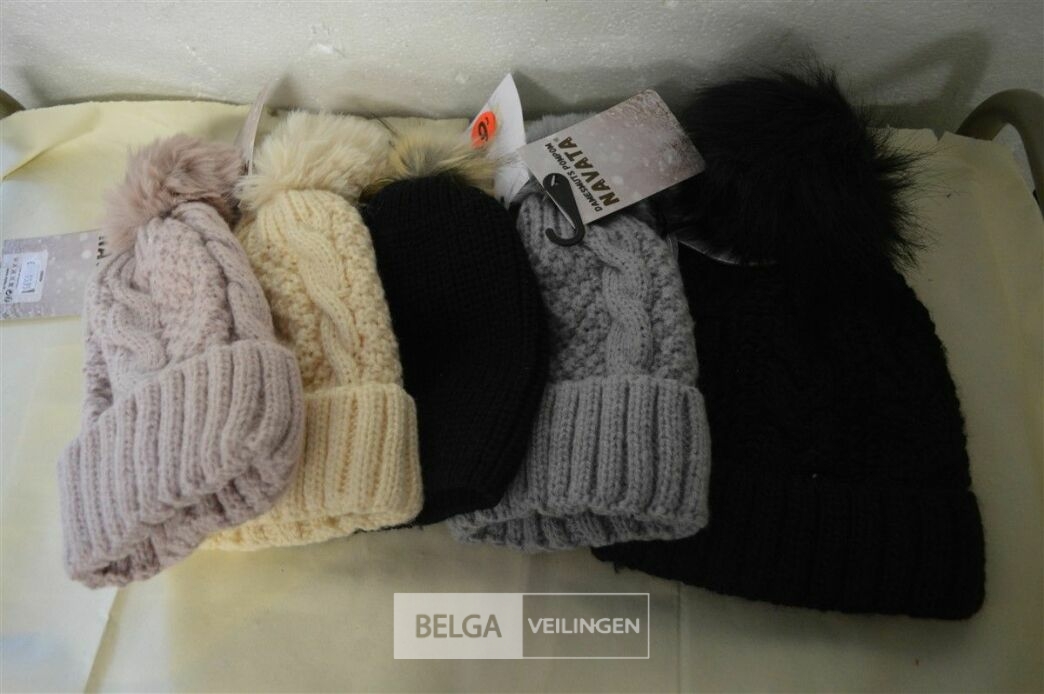5 wintermutsen met pompon div. kleuren