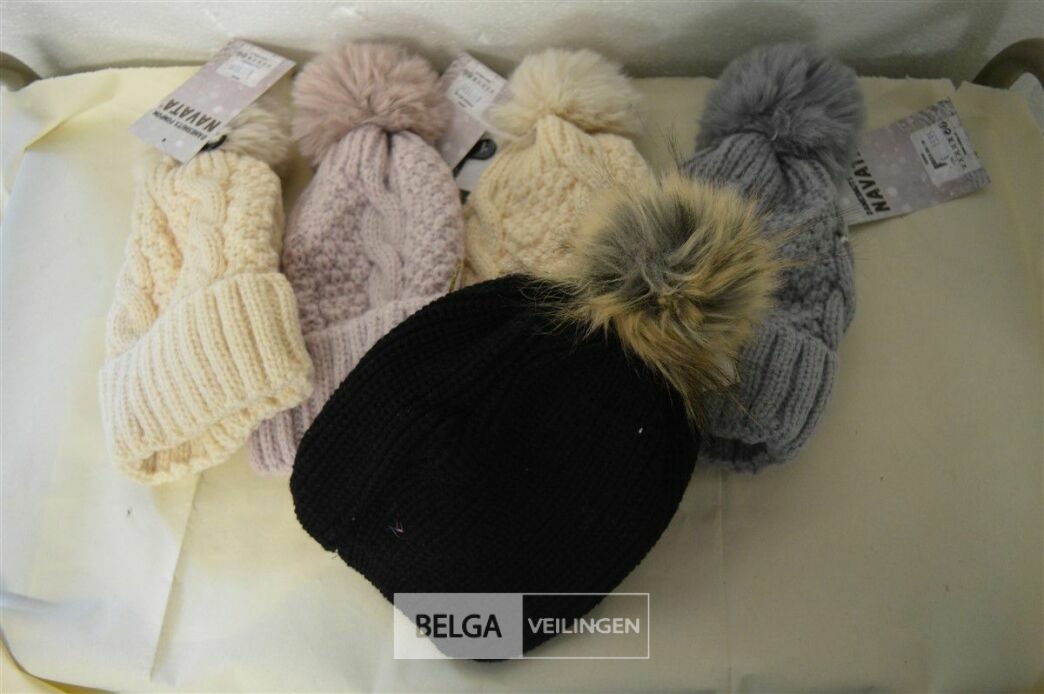 5 wintermutsen met pompon div. kleuren