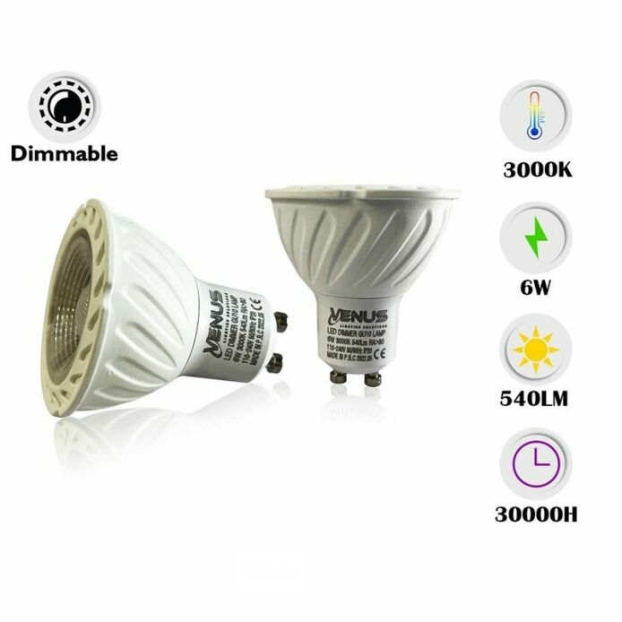 50 x GU10 LED Spot 3000K - 6W - Dimbaar - Vorm : rond - Productkleur : wit - Levensduur/uren : 30.000 - Lumen : 540 - Stralingshoek : 38 ° - Indoor - Geschikt voor gebruik : binnen - IP-waarde : IP20 - Spanning : 220-240V (50/60Hz) - Afmetingen/mm : Ø 50 x 55 - LED GU10 - Kleurtemperatuur : 3000K - CRI(RA) : > 80 - Fitting : GU10 - Vermogen : 6W replaces 60W - Dimbaar