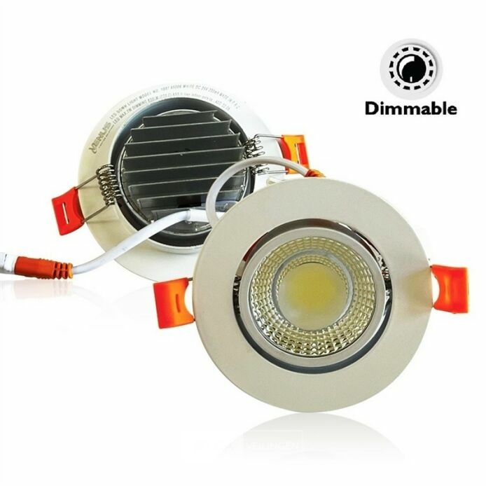 50 x Inbouwspot 7W LED Wit dimbaar 6500K daglicht - Model : inbouw - Vorm : rond - Materiaal : Metaal - Productkleur : wit - Levensduur/uren : 30.000 - Lumen : 630 - Stralingshoek : 40° - Indoor - Geschikt voor gebruik : binnen - IP-waarde : IP20 - Spanning : 220-240V (50/60Hz) - Afmetingen/mm : 88 x 50 - Inbouwmaat/mm : Ø 70 mm - LED COB - Kleurtemperatuur : 6500K - CRI(RA) : 80 - Vermogen : 7W - Dimbaar - Verstelbaar - Lichtbron inbegrepen