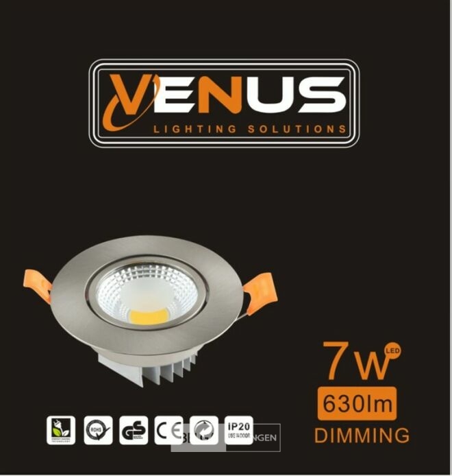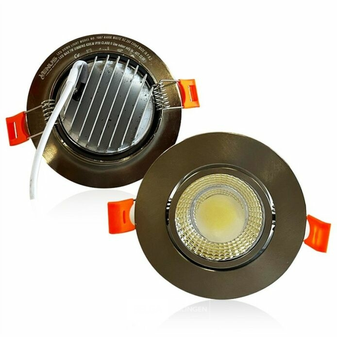 50 x Inbouwspot 7W LED Zilver dimbaar 6500K daglicht - Model : inbouw - Vorm : rond - Materiaal : Metaal - Productkleur : zilver - Levensduur/uren : 30.000 - Lumen : 630 - Stralingshoek : 40° - Indoor - Geschikt voor gebruik : binnen - IP-waarde : IP20 - Spanning : 220-240V (50/60Hz) - Afmetingen/mm : 88 x 50 - Inbouwmaat/mm : Ø 70 mm - LED COB - Kleurtemperatuur : 6500K - CRI(RA) : 80 - Vermogen : 7W - Dimbaar - Verstelbaar - Lichtbron inbegrepen
